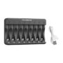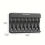 – Carregador Multi-Slot de Oito Slots: Carregue até 8 pilhas de uma só vez, economizando tempo e esforço.