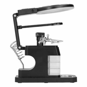 Limpeza do Bico + Suporte + 5 Pontas / Ponteiras para fazer diferentes trabalhos de solda. Excelente para técnicos em eletrônica. O ferro de solda tem um “dimmer” para escolha da temperatura do ferro.