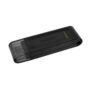 - O DataTraveler 70 da Kingston é uma unidade flash USB-C portátil e leve que possui velocidades USB 3.2 Geração 1. Ele foi projetado para ser usado com dispositivos USB-C compatíveis, como notebooks, laptops, tablets e telefones. Com capacidades de até 256 GB, o DataTraveler 70 é mais do que capaz de expandir seu armazenamento para uso diário.