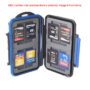 A case adota um design compacto e ambos os lados permitem armazenar cartões de memória sendo 8 cartões SD e 4 cartões CF.